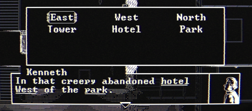 Giving a play-by-play of this entire struggle would probably be boring for you and stressful for me, so let’s skip that even if it comprised about 2/3rds of the month. I did achieve some notable work before and after this bleak venture that might be interesting. First, and precipitating much of the above-mentioned struggle, I built an interface for asking NPCs about keywords: